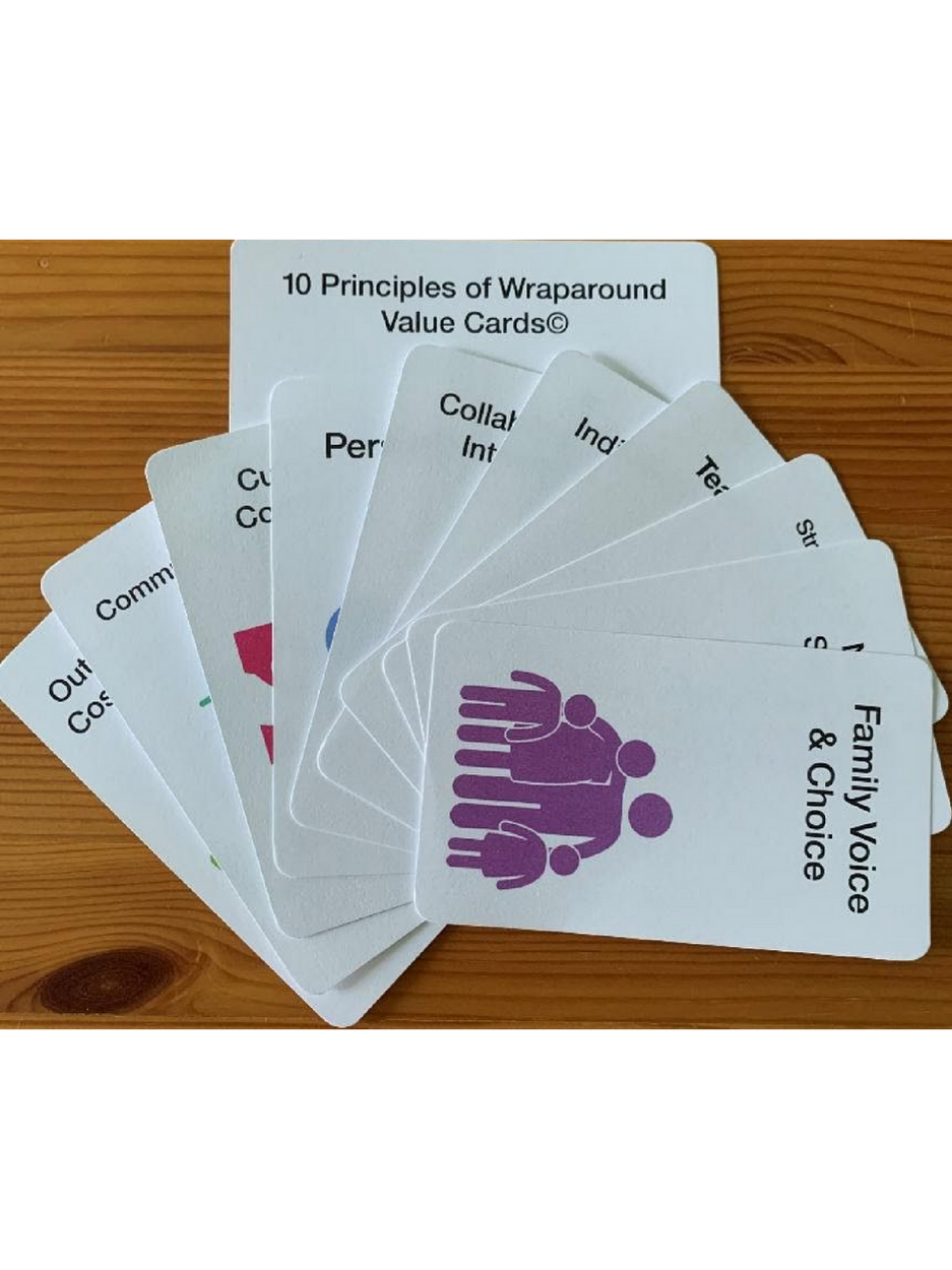 Wraparound cards are a great training tool to utilize in training and coaching to educate and support learning about the Wraparound principles.